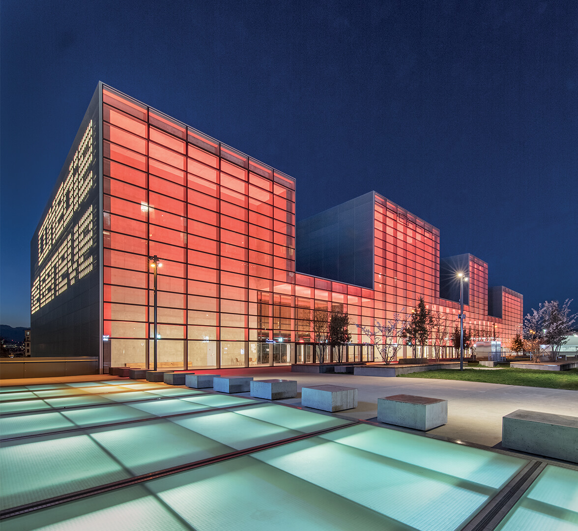 una estructura en desuso. Está animado por dos grandes fachadas acristaladas que