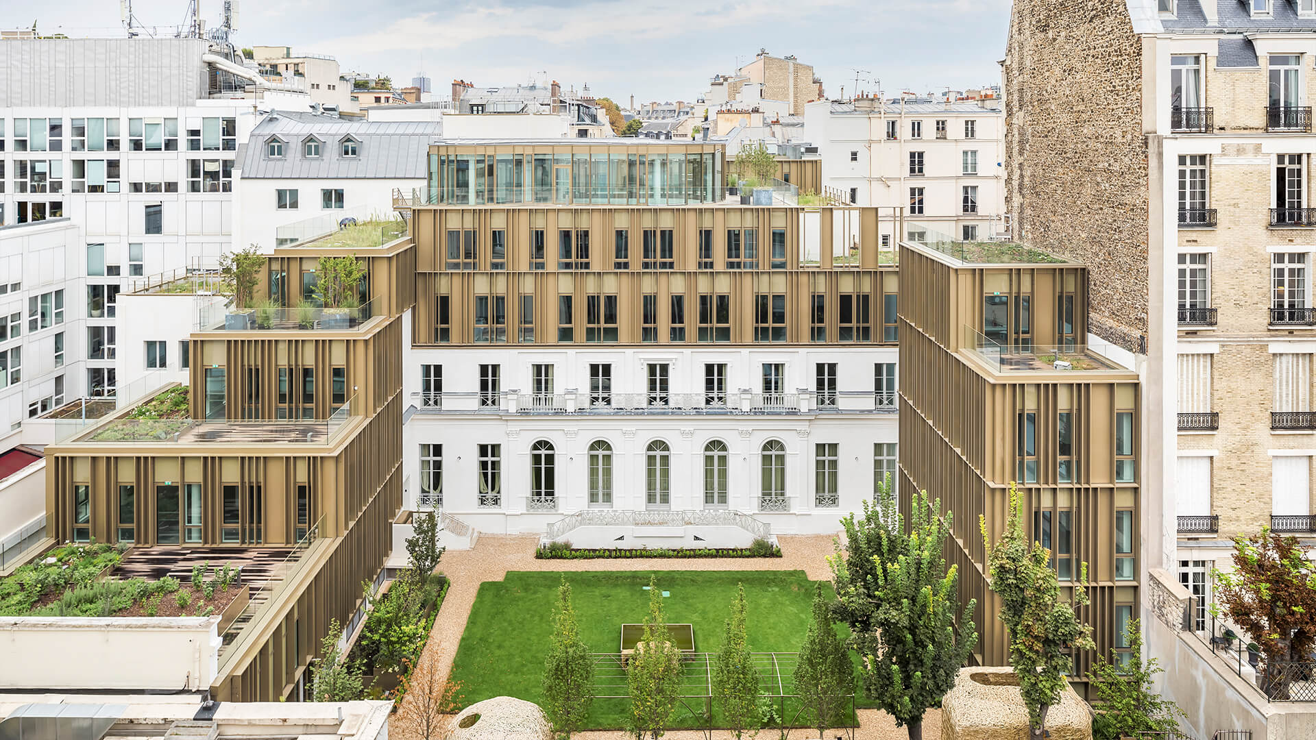 À Paris, la contemporanéité et l'histoire fusionnent dans un complexe de bureaux qui a vu le jour suite à la rénovation d'un édifice des années 1950 et à la restauration d'un hôtel particulier du XIXe siècle.