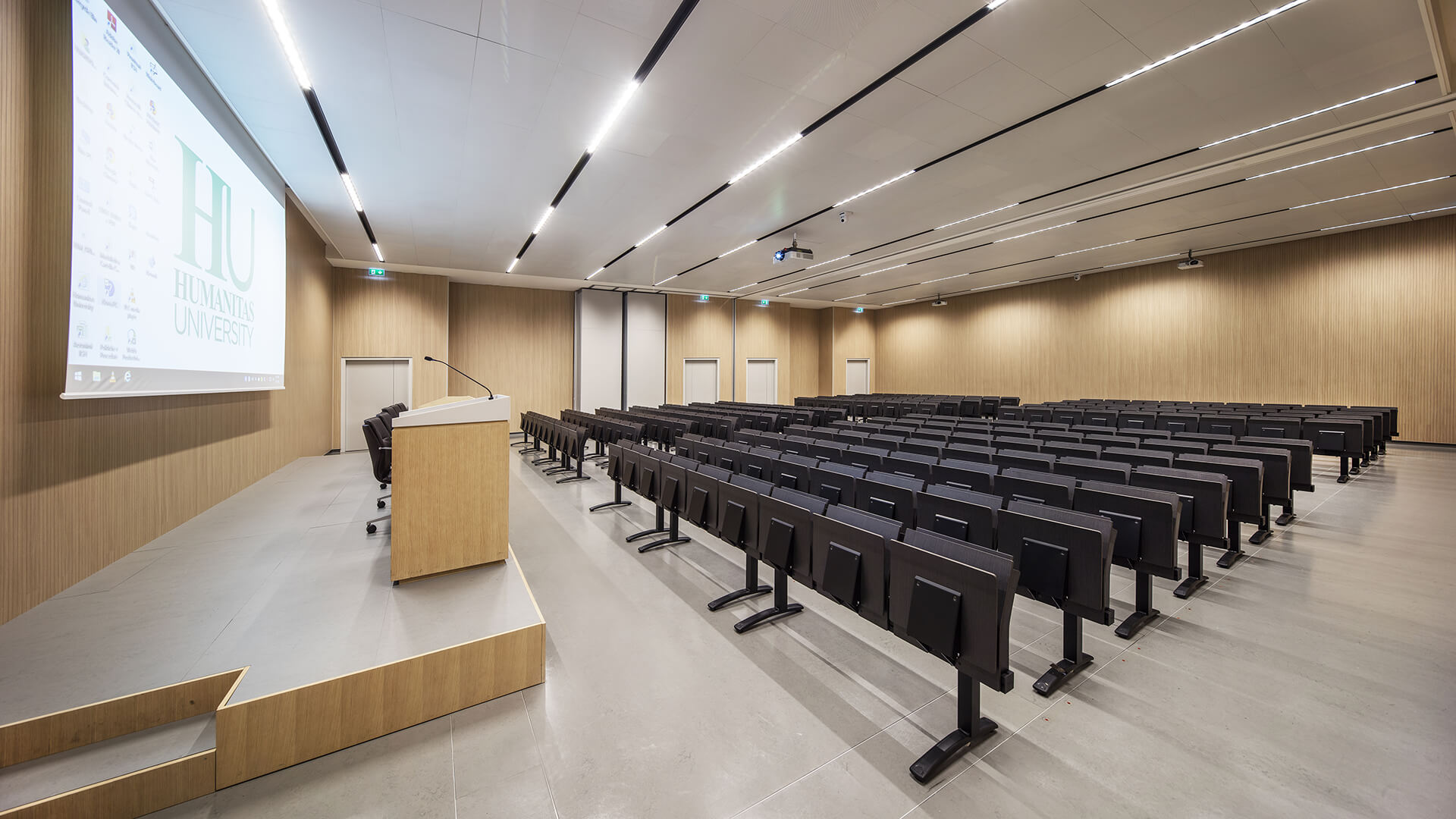 LAMM a participé à cette prestigieuse réalisation en prenant en considération les nécessités fonctionnelles et les exigences de flexibilité d’utilisation soulevées par le client. Les différentes situations et typologies de salles ont été étudiées en adaptant les installations aux différentes exigences et modalités d’enseignement, comme les cours magistraux, les travaux en groupe, les heures de pratique, etc. ainsi que les variations d’utilisation temporaire qui prévoient des cours universitaires lors de l’année académique et des masters et workshops en été.