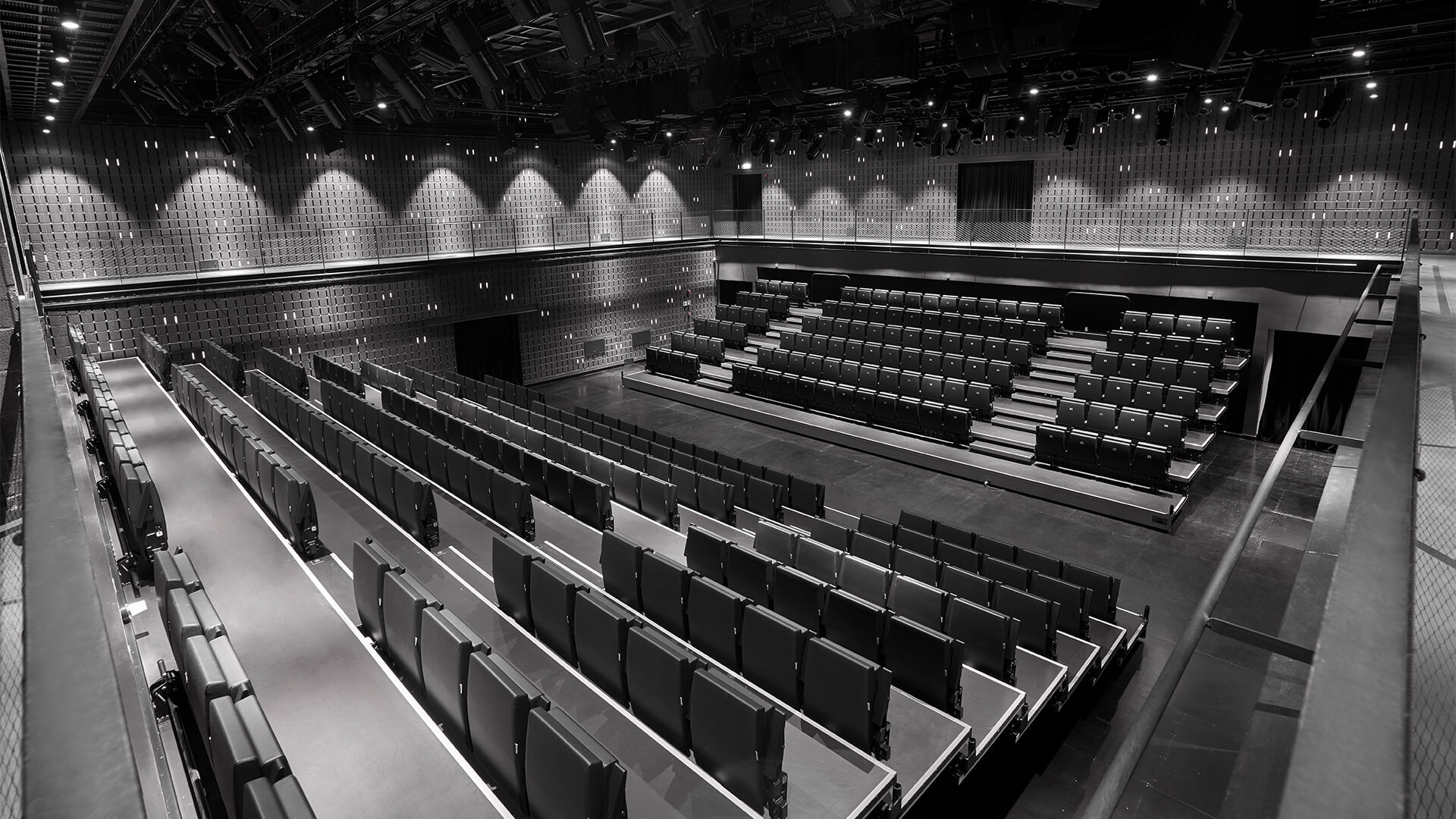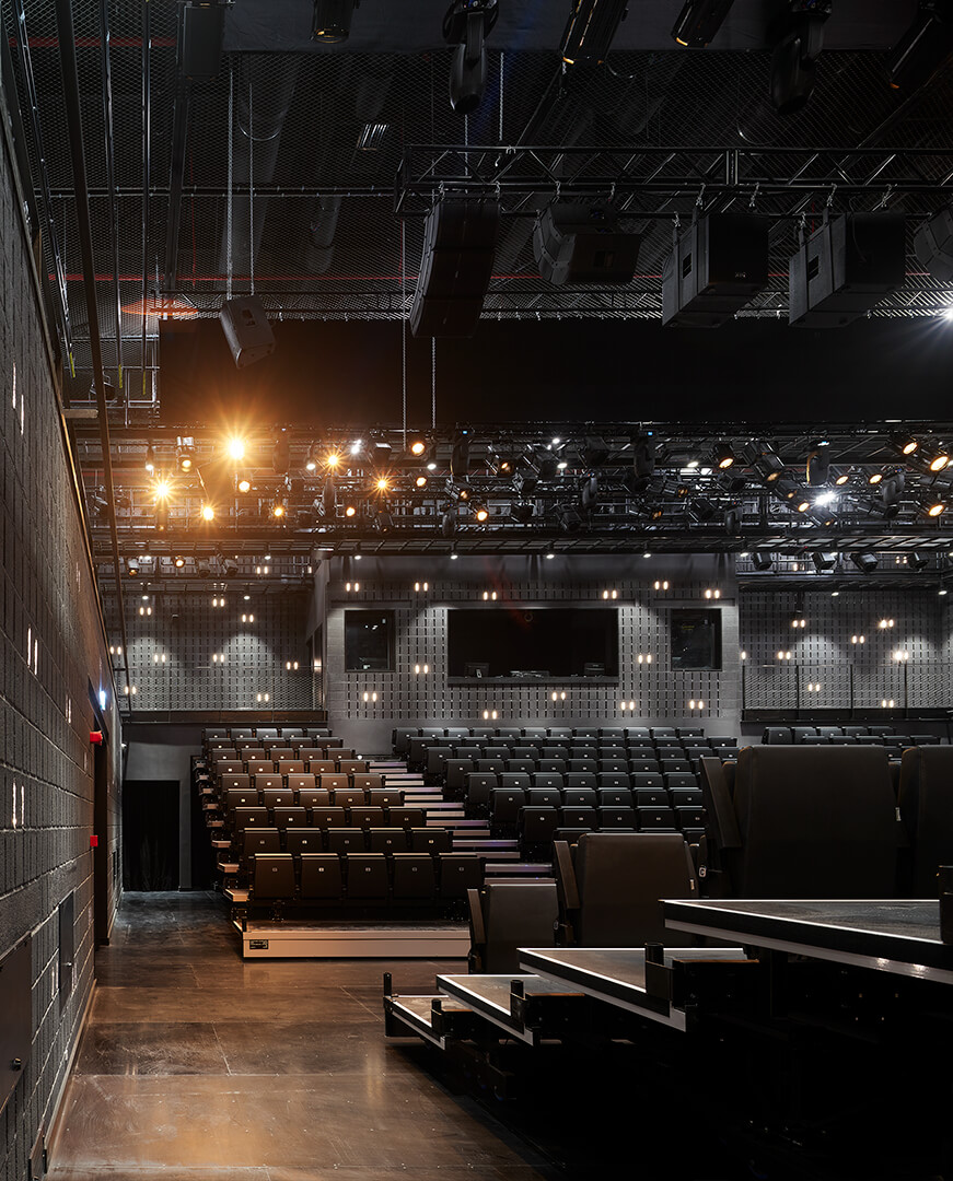 une structure culturelle contemporaine dotée d'une salle de théâtre flexible, capable de s'adapter à tous les types de