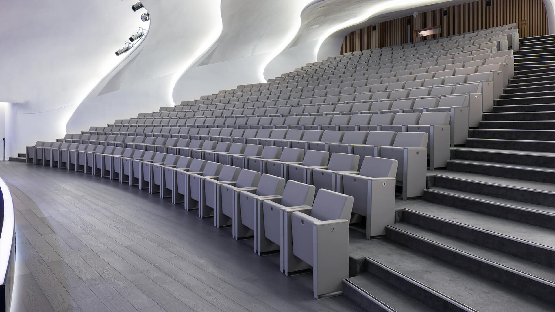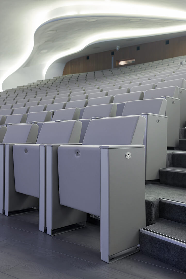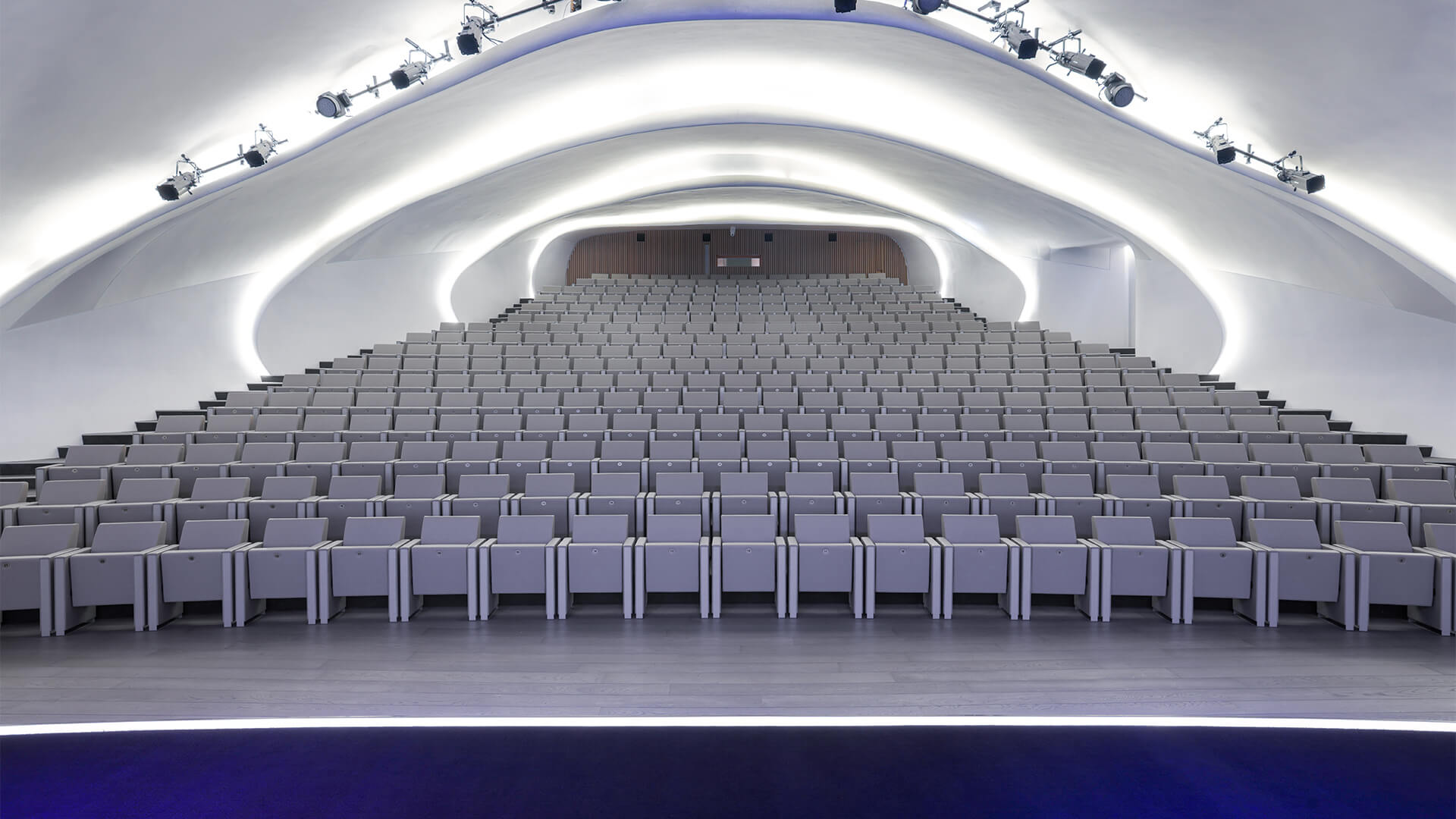 Avec les fauteuils C100, le design Made in Italy s'invite à Dubaï pour meubler l'auditorium futuriste du Museum of the Future, un musée à la forme toroïdale recouvert de 1 024 panneaux d'acier incurvés, gravés des mots du Vice-Président et du premier ministre des Émirats Arabes Unis. Les fenêtres de cette architecture iconique, conçue par Killa Design et réalisée par Buro Happold, sont obtenues à partir de géométries sculptées. À la base, l'auditorium futuriste, niché dans la colline verte, rappelle un monde sous-marin ou