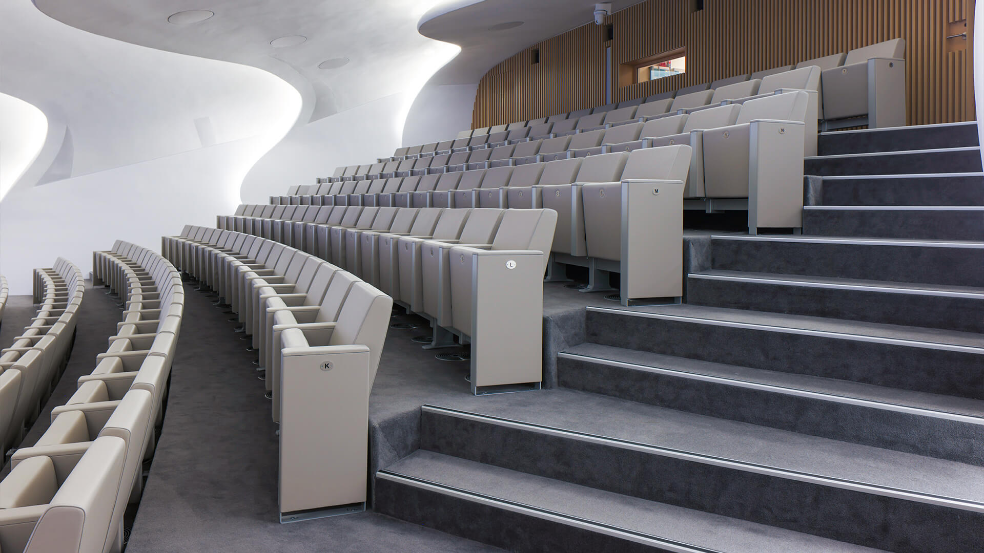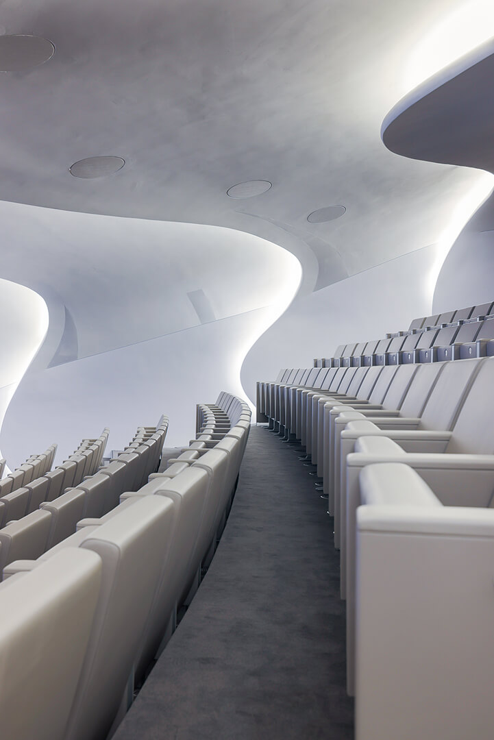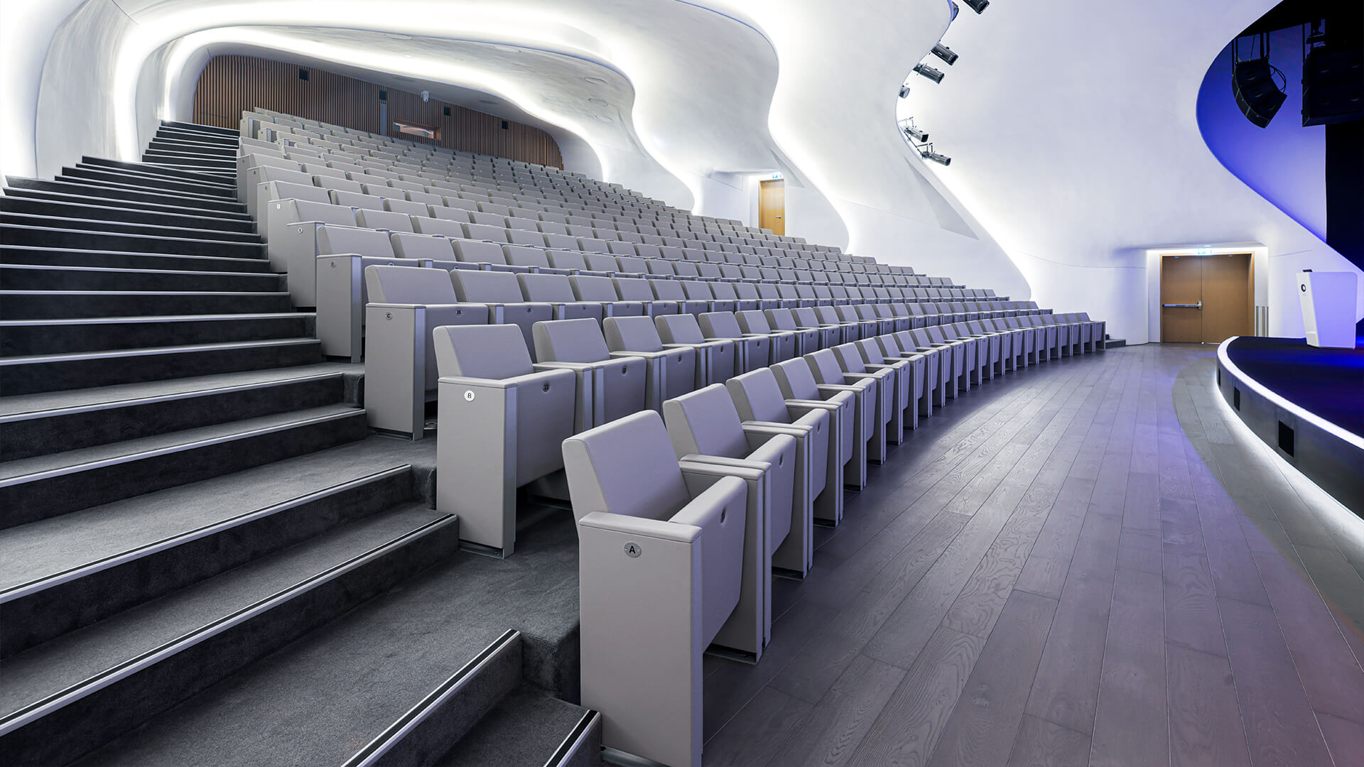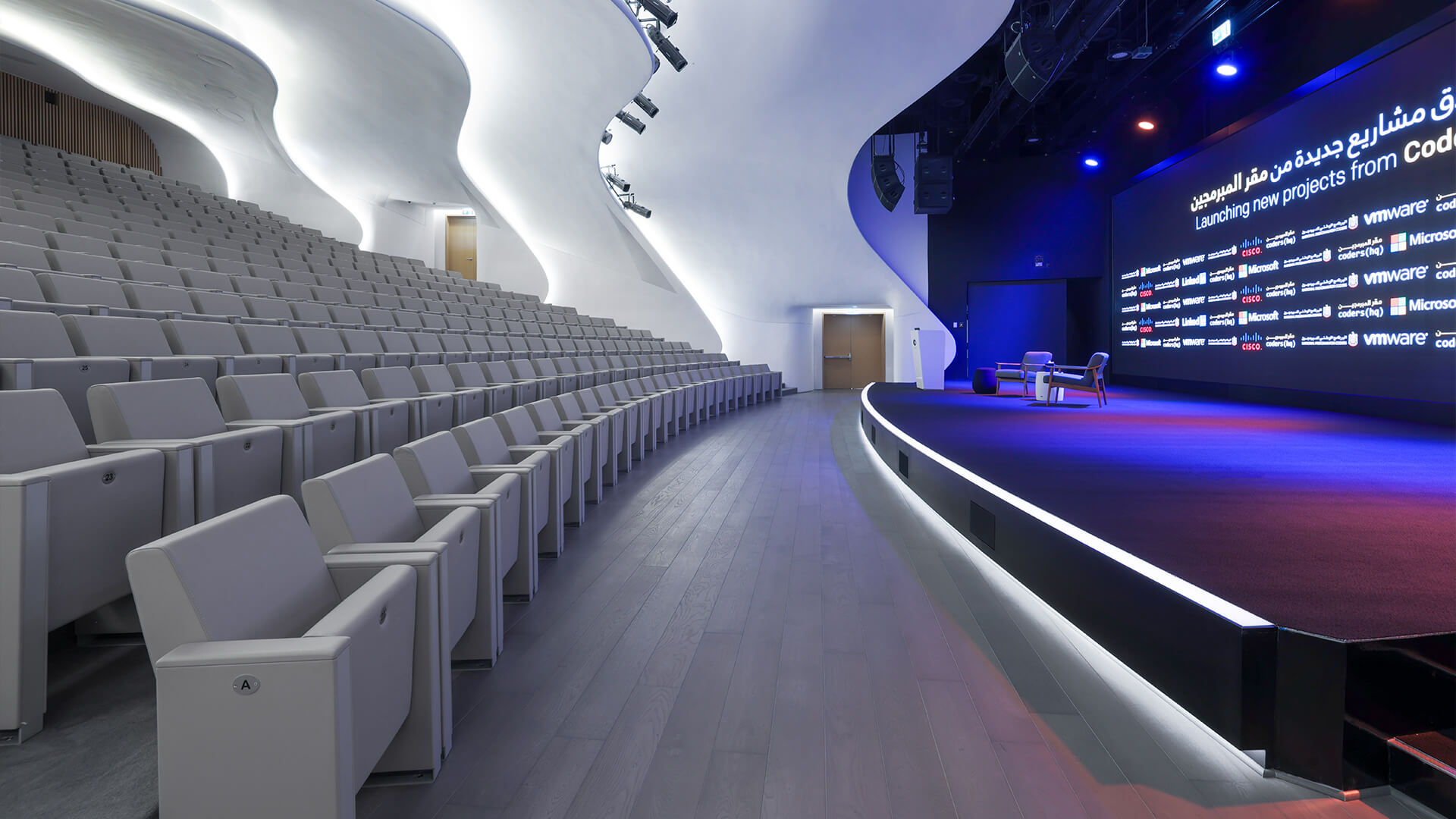 Avec les fauteuils C100, le design Made in Italy s'invite à Dubaï pour meubler l'auditorium futuriste du Museum of the Future, un musée à la forme toroïdale recouvert de 1 024 panneaux d'acier incurvés, gravés des mots du Vice-Président et du premier ministre des Émirats Arabes Unis. Les fenêtres de cette architecture iconique, conçue par Killa Design et réalisée par Buro Happold, sont obtenues à partir de géométries sculptées. À la base, l'auditorium futuriste, niché dans la colline verte, rappelle un monde sous-marin ou