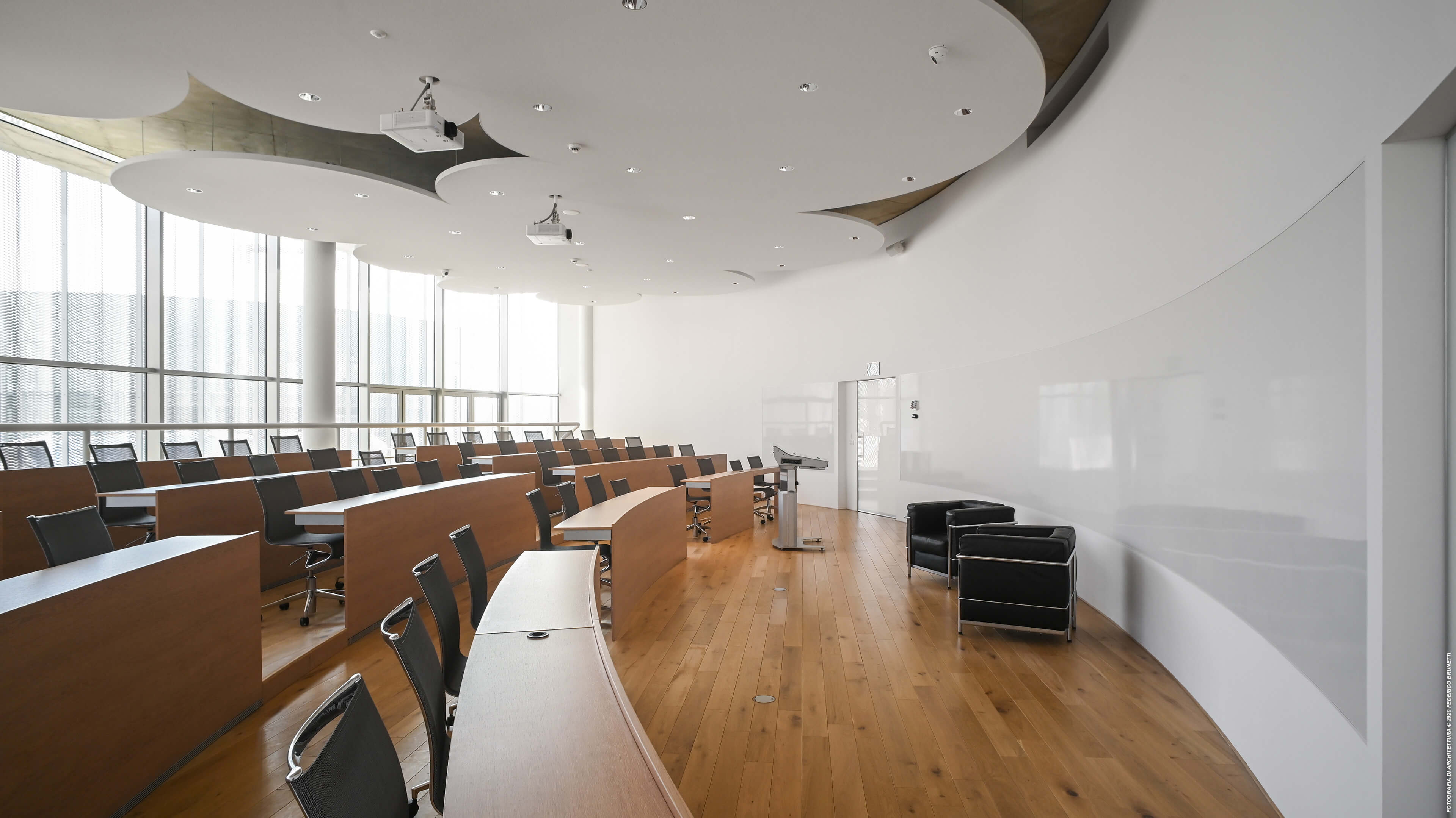 en développant le concept imaginé par les conceptrices du bâtiment, Shelley McNamara et Yvonne Farell du studio Grafton Architects. Dans ce contexte, pour le Nouveau Urban Campus, récemment inauguré au sud du site historique de l'université, l'installation d'une offre exclusive et articulée au sein du bâtiment MEO (Master - Executive -Office) a été récemment achevée. LAMM, en collaboration avec Dante Bonuccelli - Avenue Architectes, a été désigné pour développer des systèmes didactiques innovants à insérer dans les différents espaces, y compris des bureaux d'étude, des fauteuils et des plates-formes fixes, caractérisés par des solutions sur mesure, confirmant la capacité de l'entreprise à satisfaire les besoins de conception de plus en plus complexes et articulés, en combinant l'esprit essentiel du design avec les normes les plus élevées en termes de qualité et de confort.