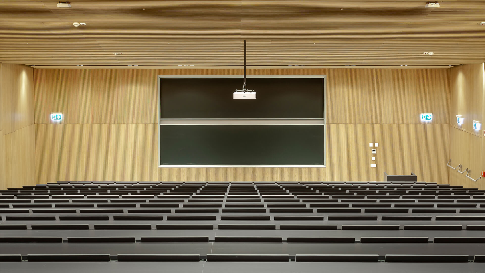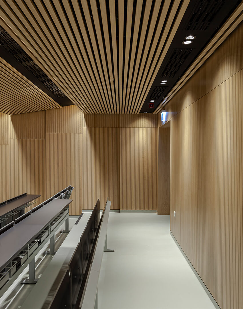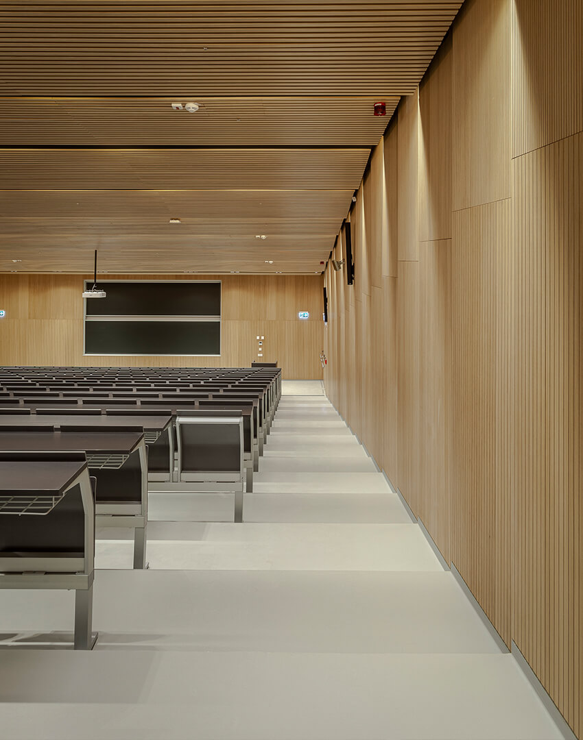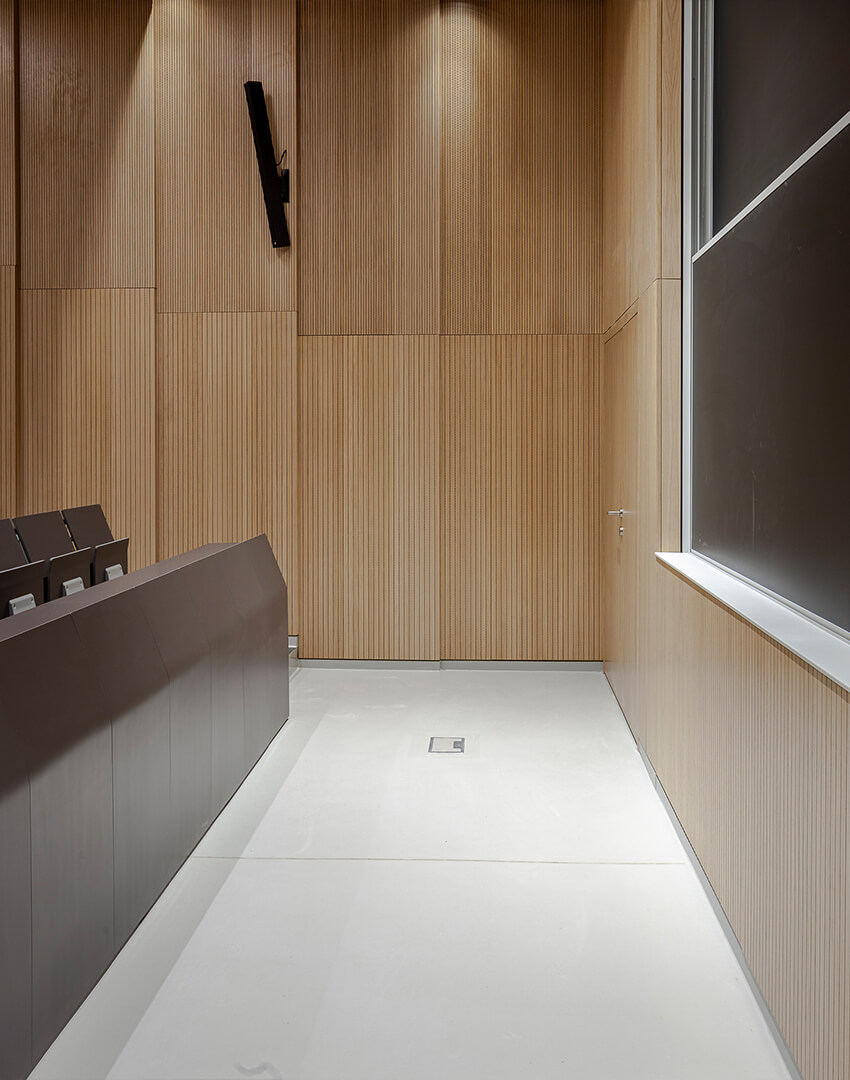 298 E5000 seats with fixed surface + 9 with tip-up surface (larger room); 176 E5000 seats with fixed surface+ 4 with tip-up surface (smaller room)