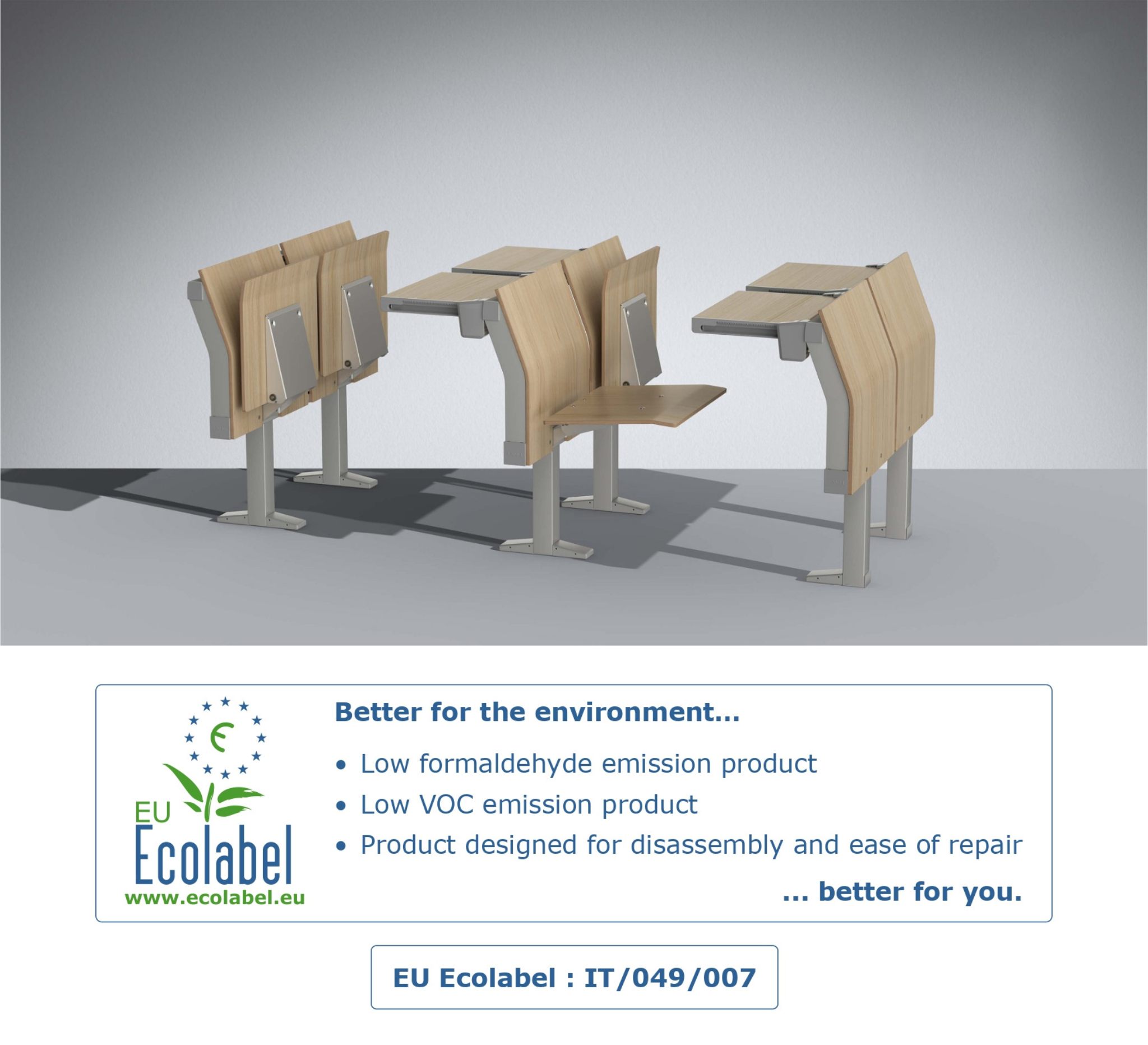 The E4000 study bench is the first product of its kind in Europe to receive the prestigious European ecological quality mark.