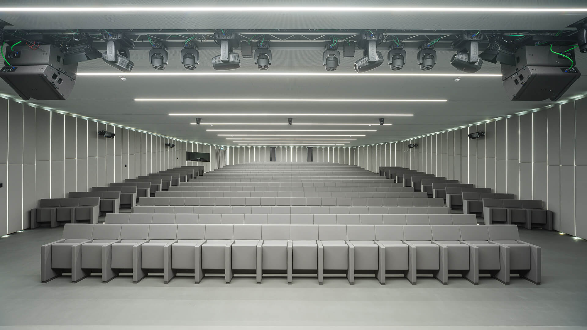 The minimalist design and elegant lines of the L213 chairs furnish the spaces of the auditorium in the new conference centre of the Megawatt Group, a historic company from the Naples area with over 40 years of experience in the electrical sector. A new wing was built for the company's headquarters, the centrepiece of which is the auditorium: state-of-the-art spaces designed by Sag architettura - Giancarlo Scognamiglio Architettura and Maurizio Del Vecchio.